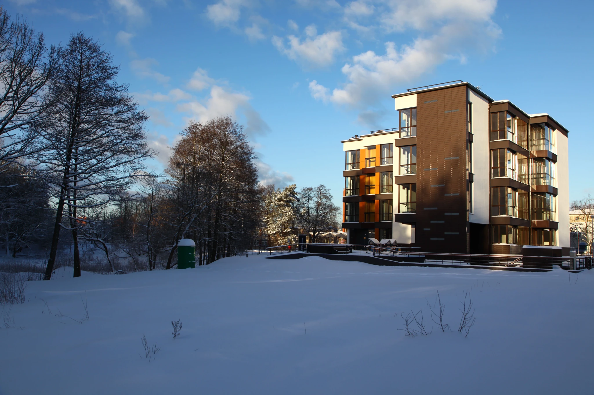 „Maiga gaisma no apsnigušiem jumtiem iespīd istabā, un , kad es pieeju pie loga un paskatos lejā uz savu dārzu, es redzu, ka koki tur lejā ceļ atkal uz augšu savas balti pūderētās galvas. Šo dārzu es saucu par savu tikai tāpēc, ka es varu viņu aplūkot no sava piektā stāva loga. [...] Pirmais vējputenis griežas Rīgas ielās. Sagriezušies iet gājēji, pieturēdami cepures un mēteļu stūrus. Blondas galviņas atrisušām matu sprogām parādās skatu logu zeltainajā spožumā, un vējš viņas aizsedz ar virpuļojošu pārslu šķidrautu.”